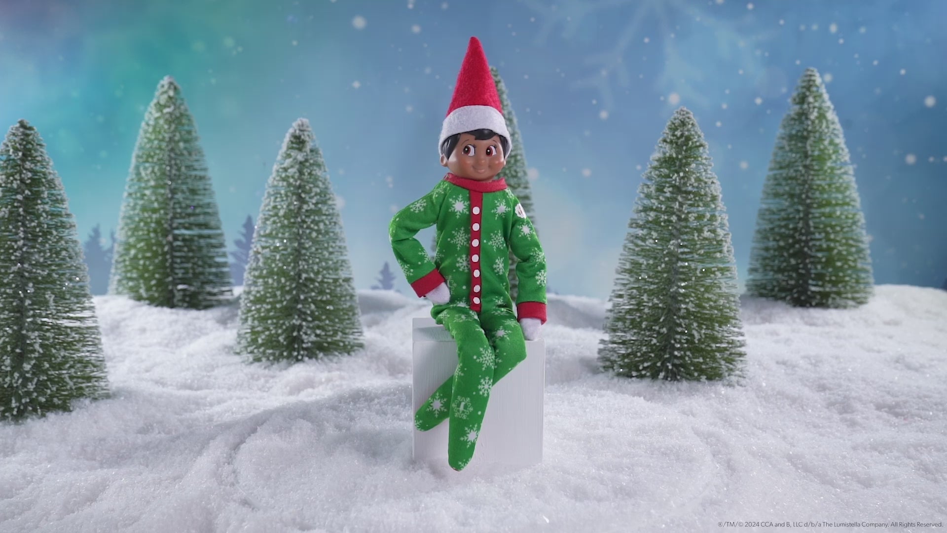 Merry Christmas to all, and to all a snuggly good night! Your Scout Elf® helper can bring holiday spirit to bedtime in these vibrant green PJs with whimsical snowflakes and candy cane details. Sweet dreams!