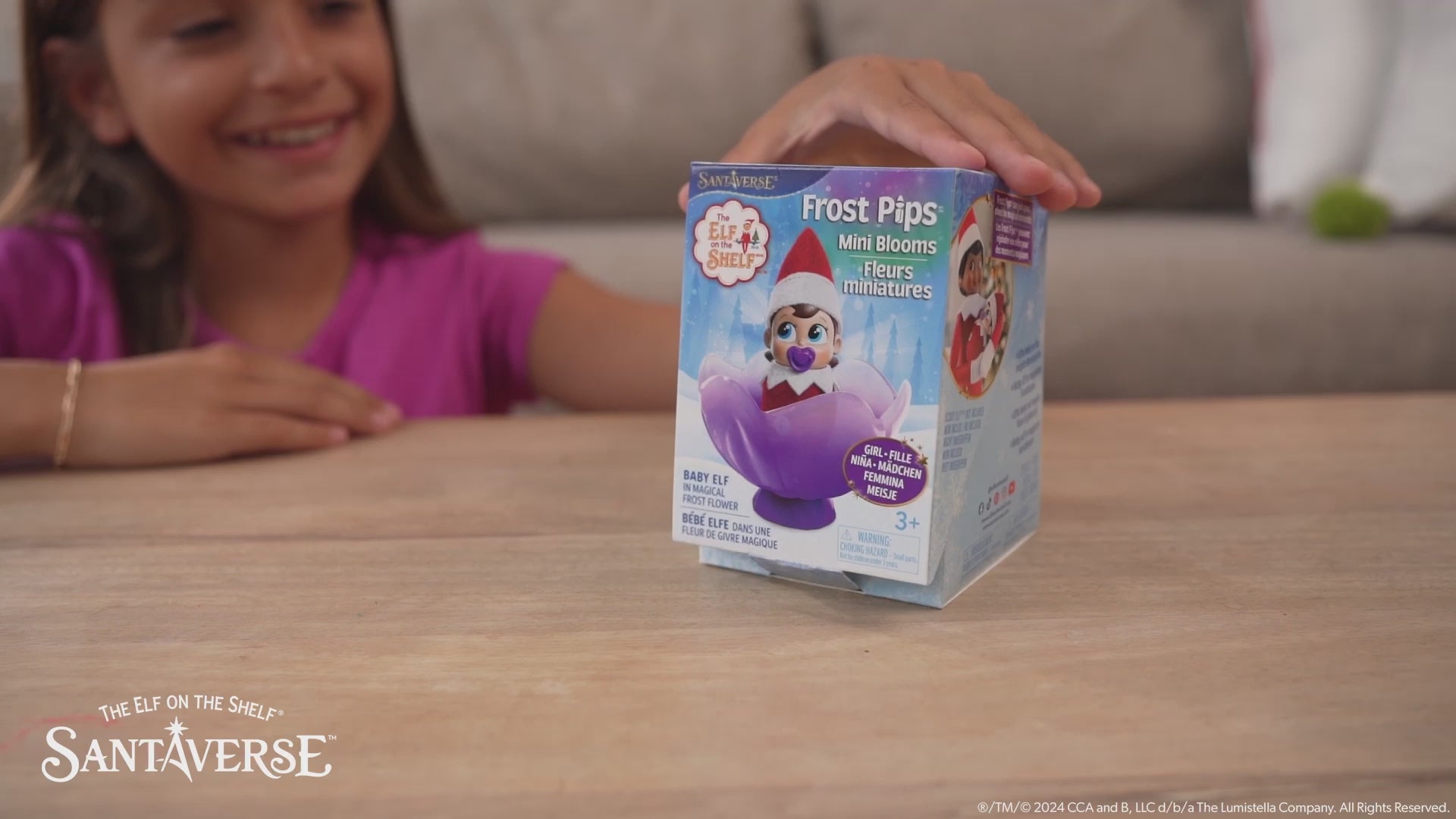 The enchanting Frost Pips™ miniatures bloom at the North Pole from frost flowers! Frost Pips™ are baby elves, known for their playful spirit and captivating charm. Give them love and care, and with nourishment from their frost flower home, they’ll be protected, and they just may one day be Santa’s Scout Elf® helpers. Collect all four elf babies and let the magic begin blooming with this Christmas toy!